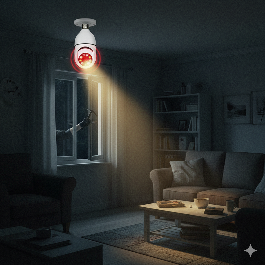 Transforma tu hogar en una fortaleza de seguridad con esta cámara inteligente integrada en una bombilla. 💡 En cuanto se detecte movimiento, recibirás una alerta instantánea en tu teléfono, para que siempre sepas cuándo hay alguien ahí, aunque no estés presente.
